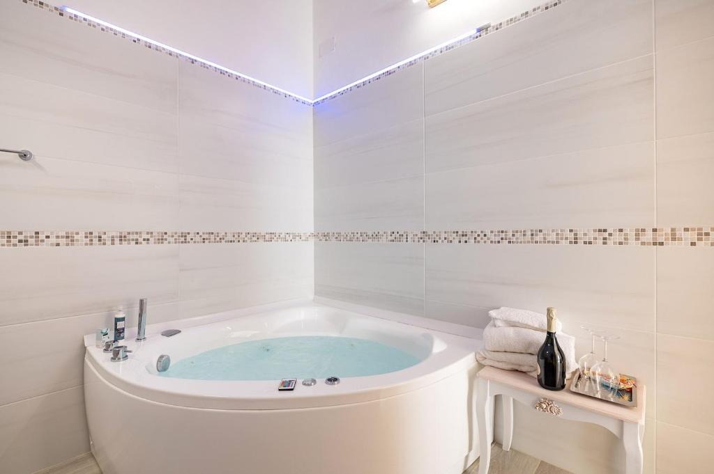 Suite intima e romantica, con letto king size, bagno moderno e una vasca idromassaggio privata per due. Gli arredi eleganti e l'atmosfera rilassante la rendono perfetta per una fuga d'amore nel cuore di Ostuni.