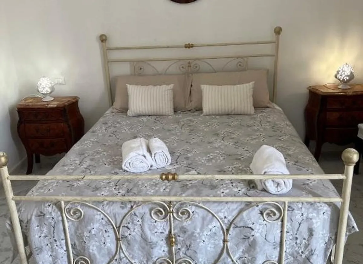 Suite intima e romantica, con letto king size, bagno moderno e una vasca idromassaggio privata per due. Gli arredi eleganti e l'atmosfera rilassante la rendono perfetta per una fuga d'amore nel cuore di Ostuni.